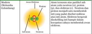 B. Atom dan Partikel Penyusunnya1. Partikel SubatomAtom tersusun atas partikel-partikel penyusun atom atau partikel subatom yaitu neutron (n), proton (p), dan elektron (e). Neutron dan proton membentuk inti atom. Elektron menempati kulit-kulit atom yang ada di sekitar inti. Elektron-elektron tersebut mengelilingi inti dengan kecepatan tinggi membentuk awan elektron. Elektron dan proton merupakan partikel subatom yang mempunyai muatan berlawanan, sedangkan neutron tidak bermuatan. Elektron memiliki muatan negatif sedangkan proton memiliki muatan positif.